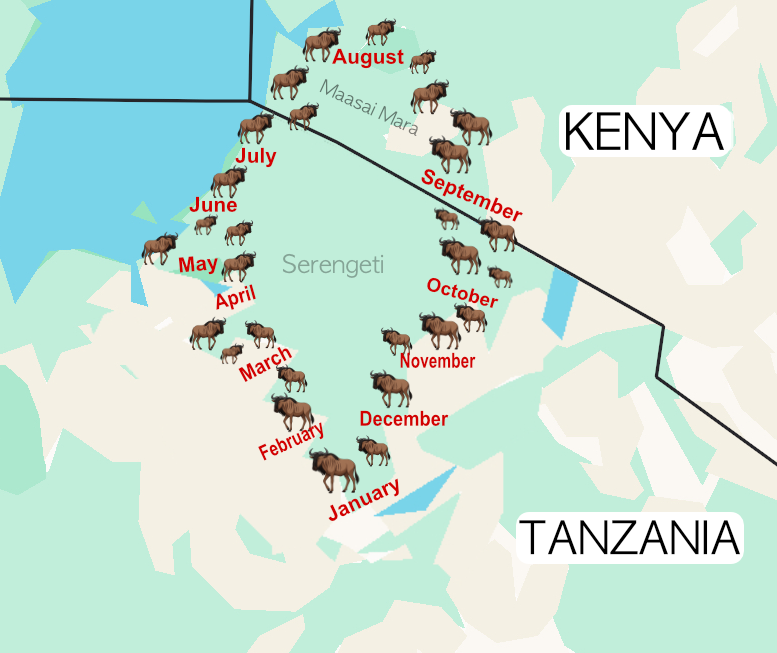 Calving Season (December–February): The journey begins in the southern Serengeti plains, where vast herds gather to give birth. This season is full of new life and predator action.